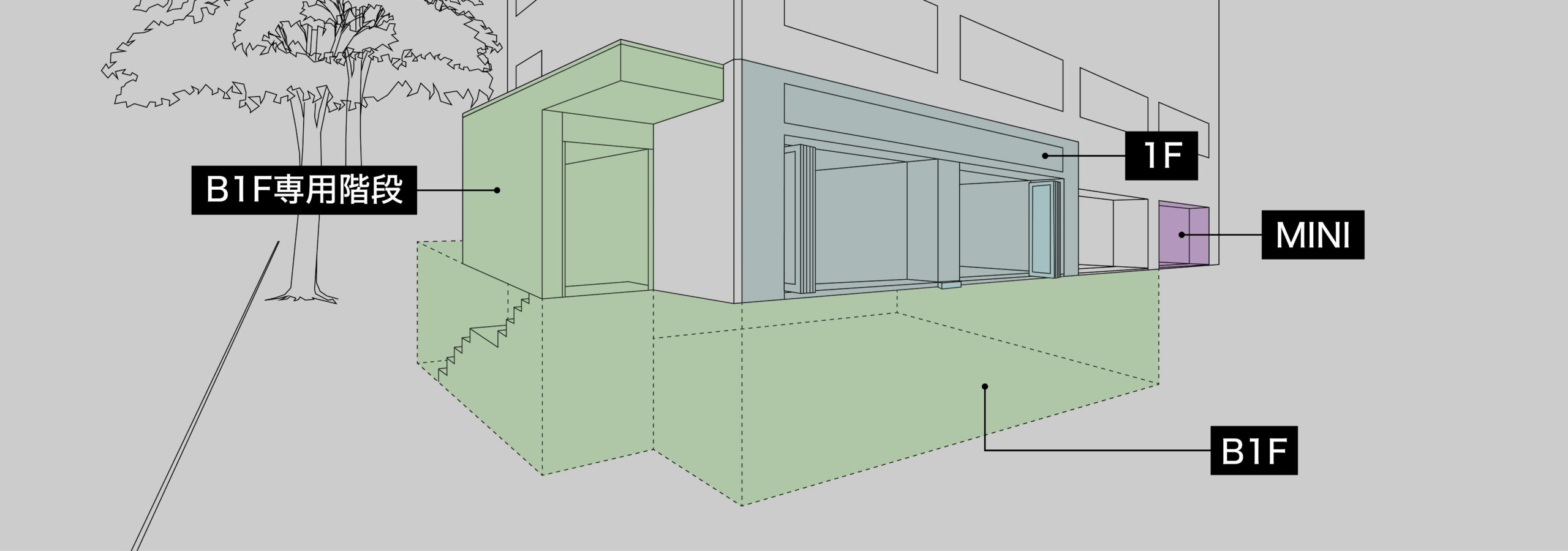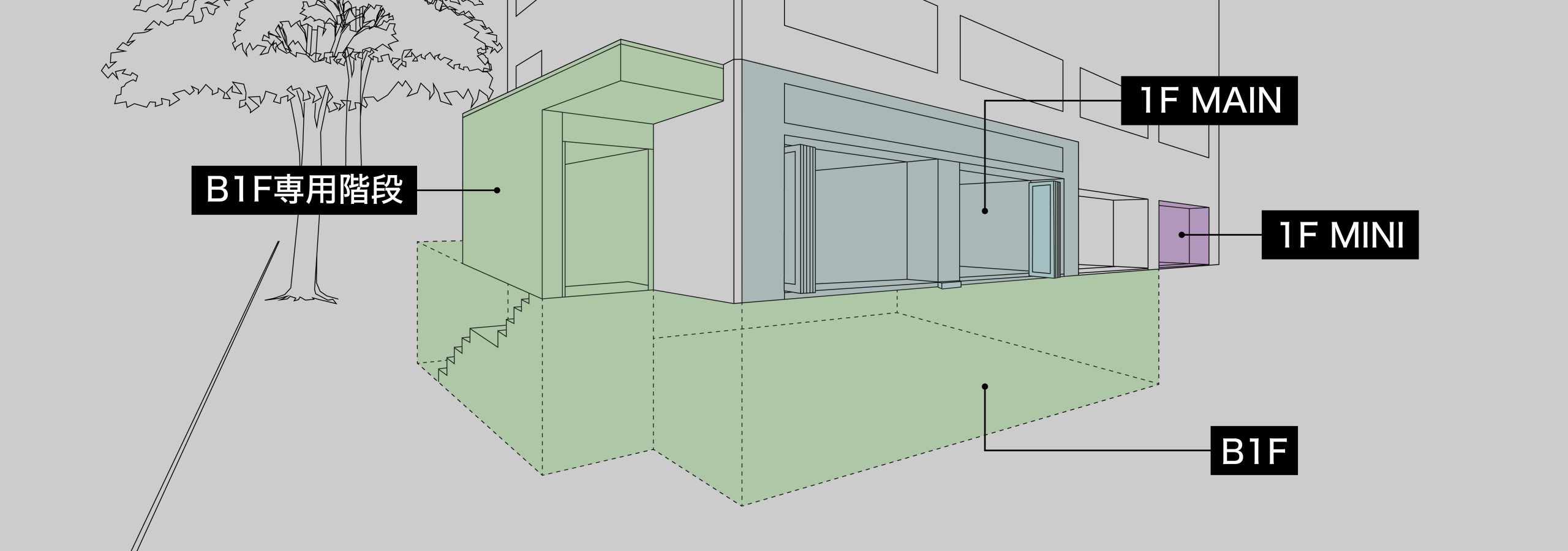 「1F MINI」は、小規模なポップアップストアやギャラリーなど、